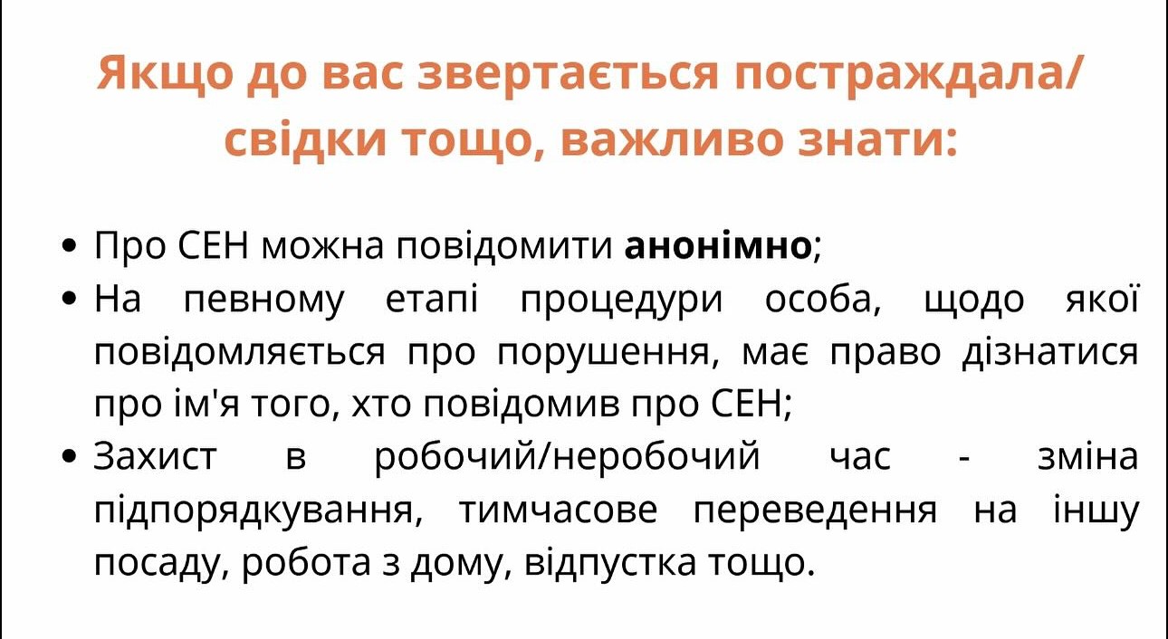 Recently, staff NGO “La SufferingUkraine" and members/member of the National coaching and mediation networks have undergone planned trainings on sexual violence prevention operation and maintenance (ZSEN), aimed at strengthening internal safety standards, improving ethical interaction with the organization's beneficiaries and evaluating performance organization of obligations regarding Safeguarding and PSEA.